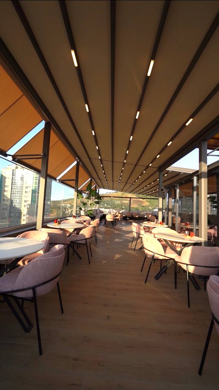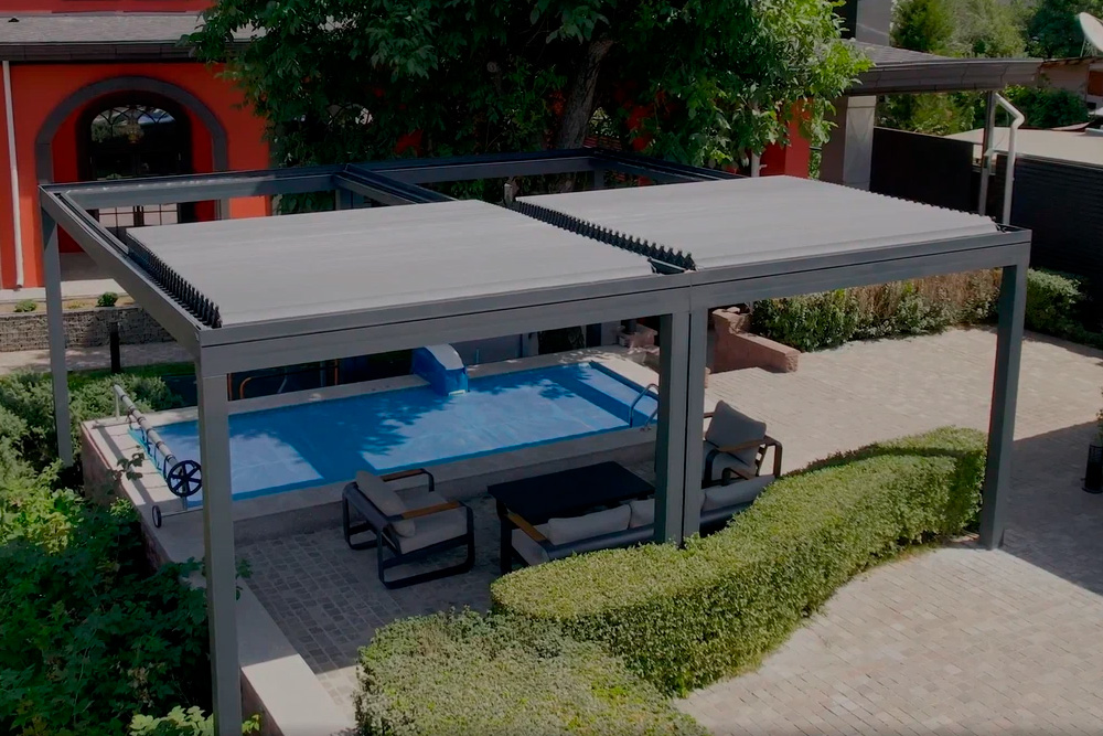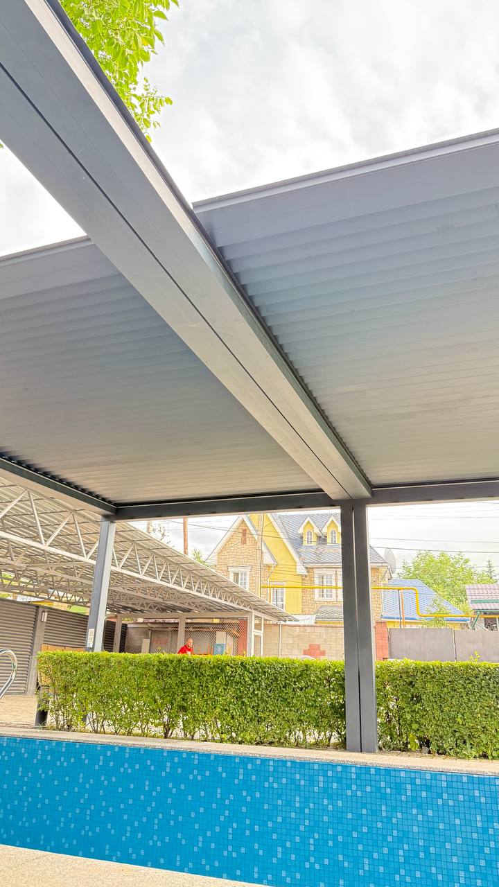 Биоклиматическая пергола — это инновационная алюминиевая конструкция с поворотными ламелями, которая обеспечивает комфорт на открытых пространствах в любых погодных условиях. В Казахстане такие перголы всё чаще устанавливают на террасах частных домов, в ресторанах, кафе, отелях, на коммерческих и общественных объектах.