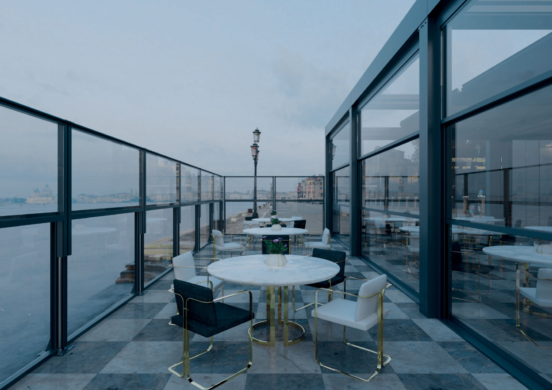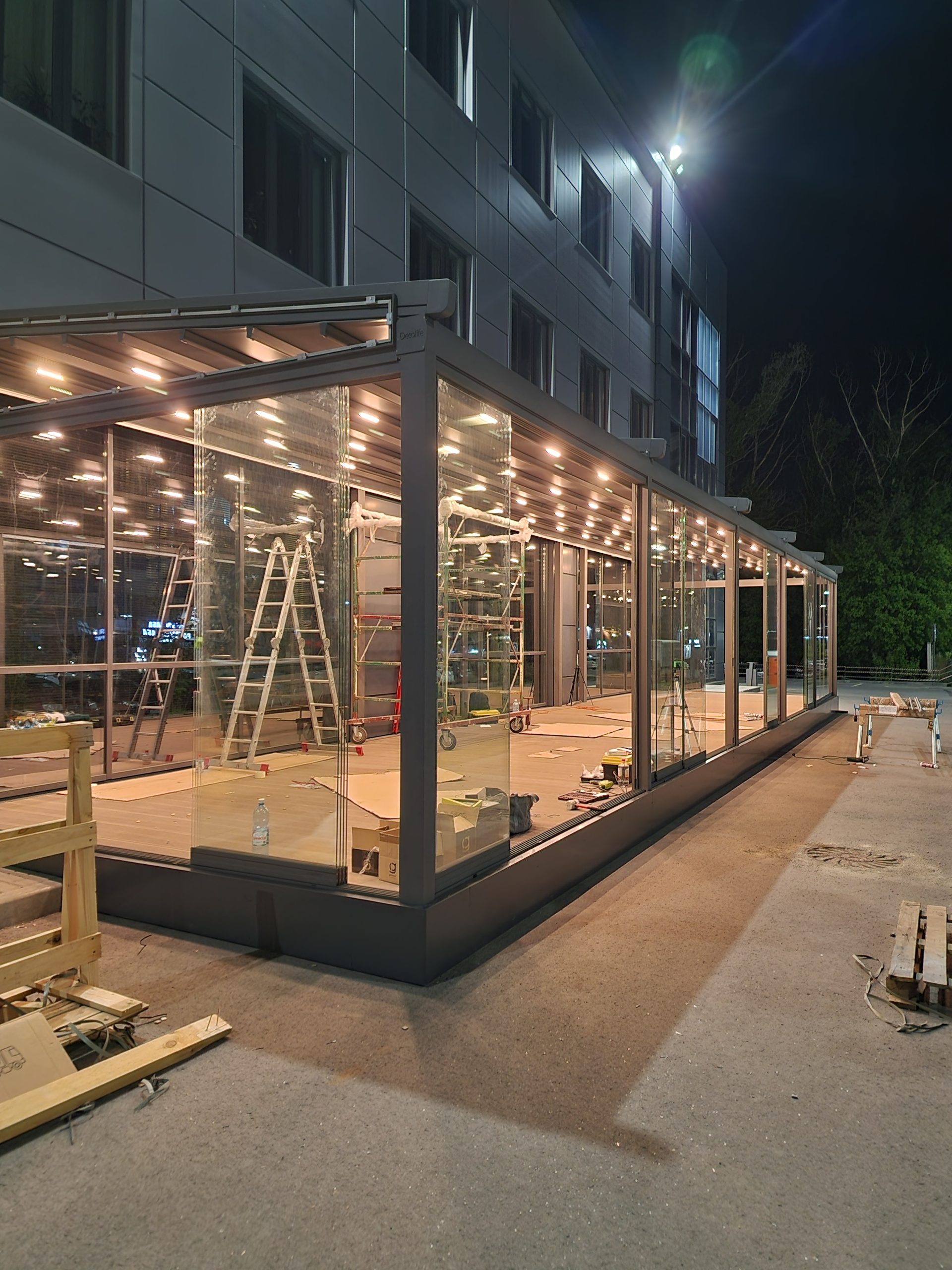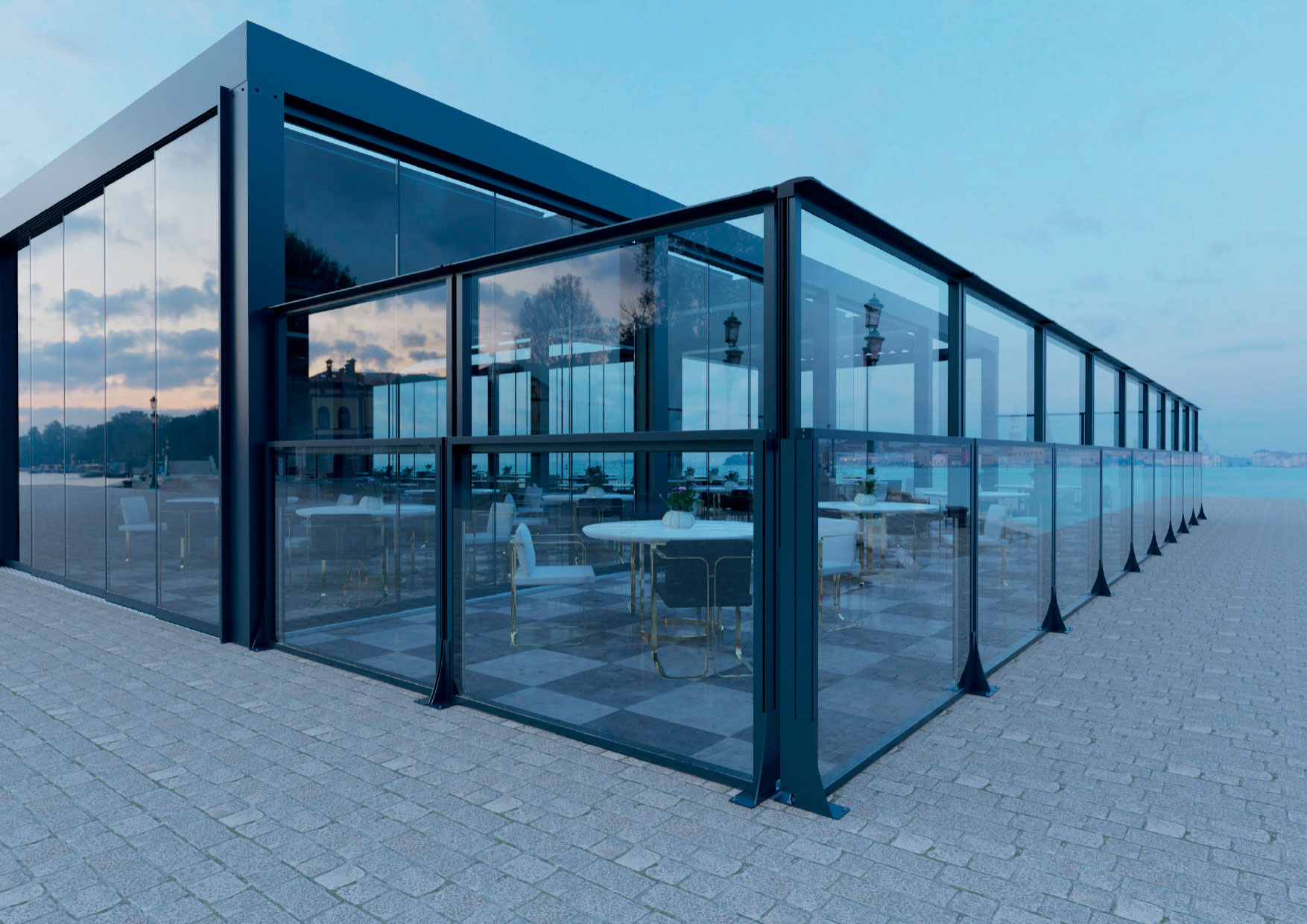 Слайдинговое остекление создаёт ощущение открытого пространства, сохраняя при этом комфорт и функциональность. Для бизнеса это решение позволяет использовать террасы в течение всего сезона и улучшить внешний вид объекта.