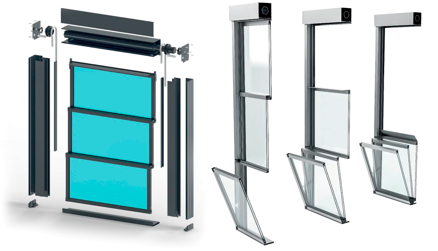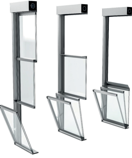 Гильотинное остекление — это вертикальная раздвижная система, где стеклянные створки движутся по направляющим вверх и вниз. Нижняя панель может фиксироваться в любом положении и часто используется как стеклянное ограждение.