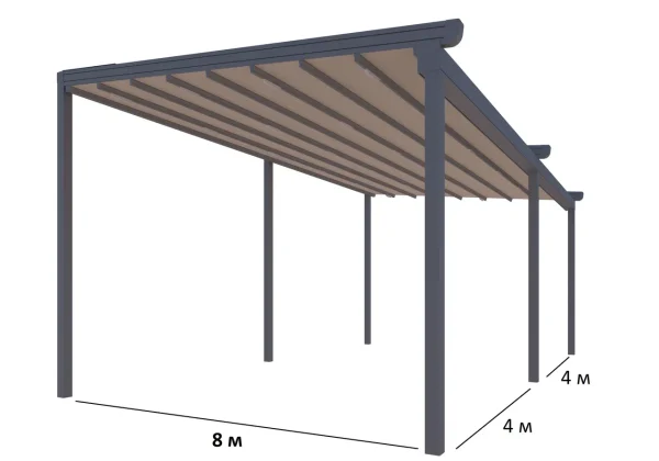 Средний срок службы тентовой перголы составляет 8–12 лет, при правильной эксплуатации и регулярном обслуживании.